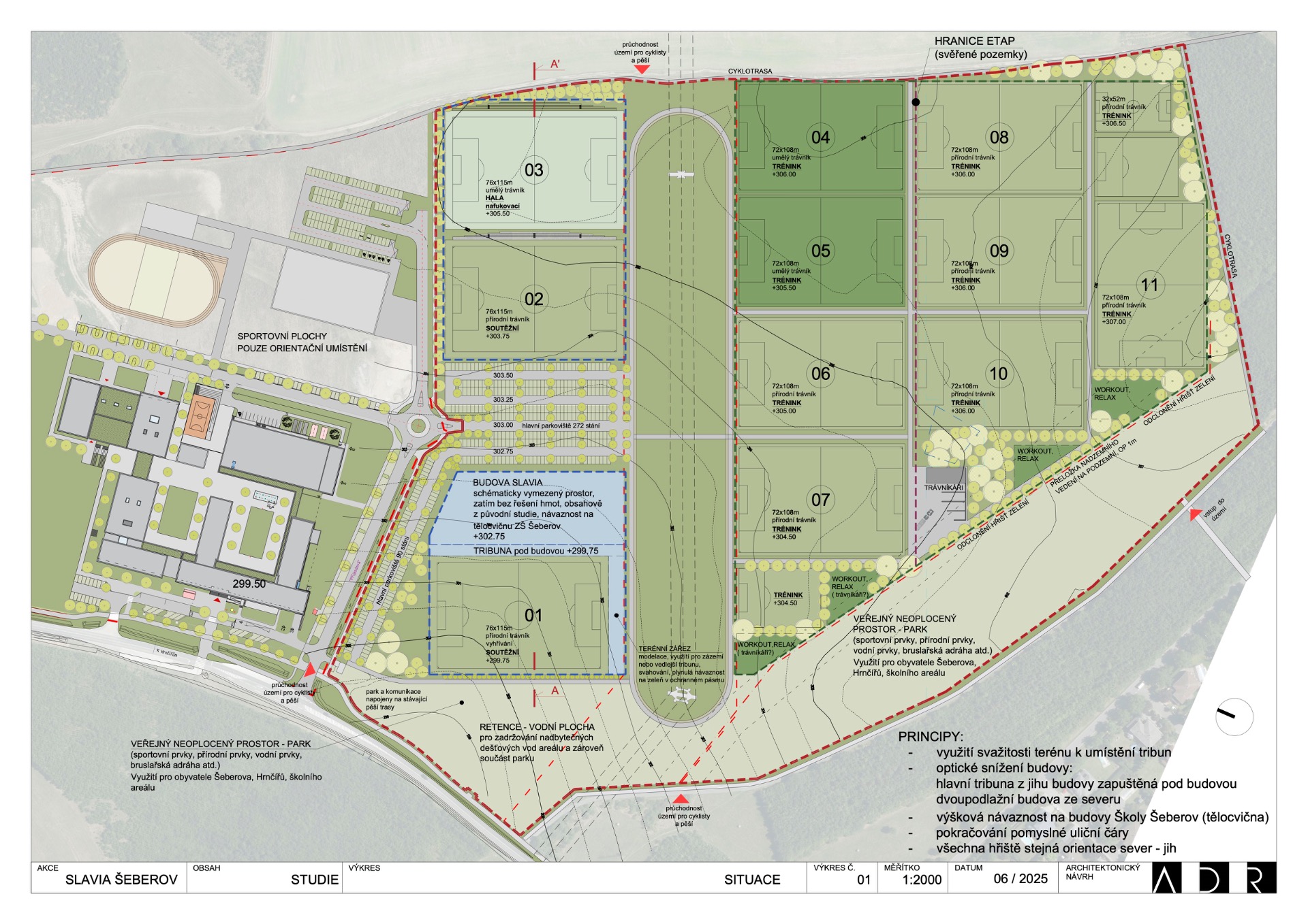 7/ Slavia chce postavit 11 fotbalových hřišť + 3 menší hřiště. To se na pozemek vejde?