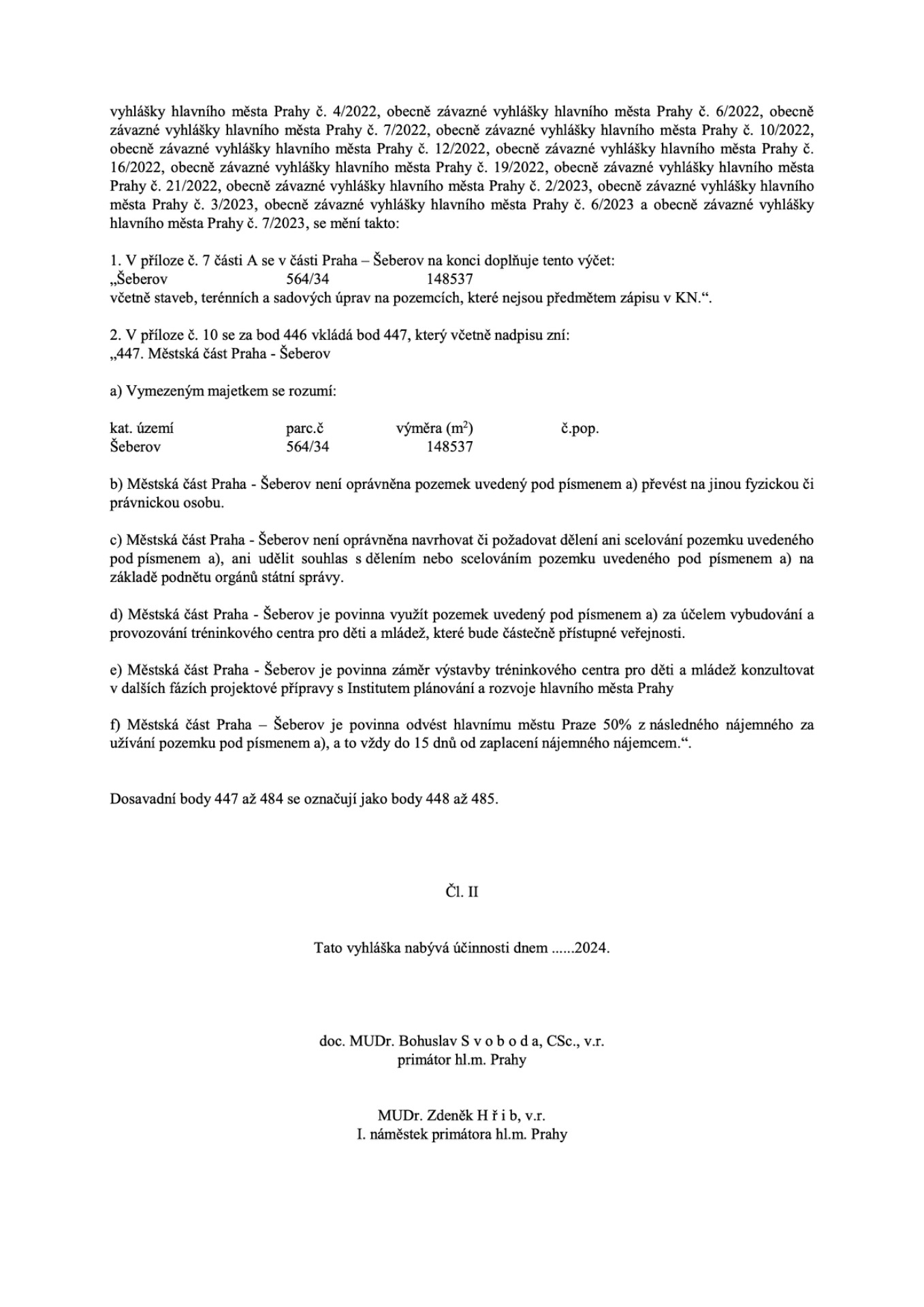 A) Vymezeným majetkem se rozumí: parcela č. 564/34, katastrální území Šeberov o výměře 148.537 m2