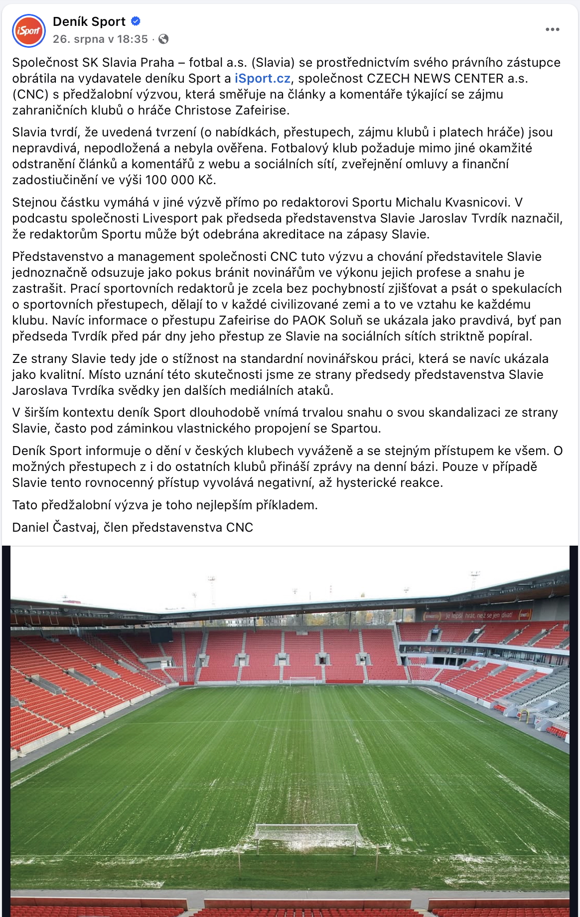 Seznam Zprávy: "Fotbal mi je ukradený." Velké plány Slavie rozdělují pražskou čtvrť